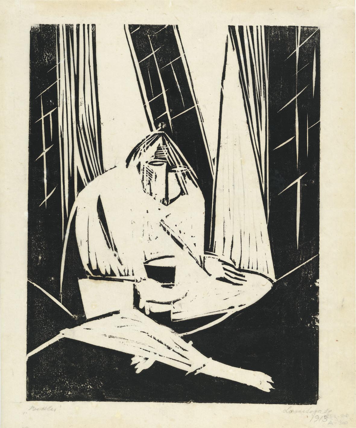 Manuscrito a grafite em alemão- no canto inferior esquerdo abaixo do suporte